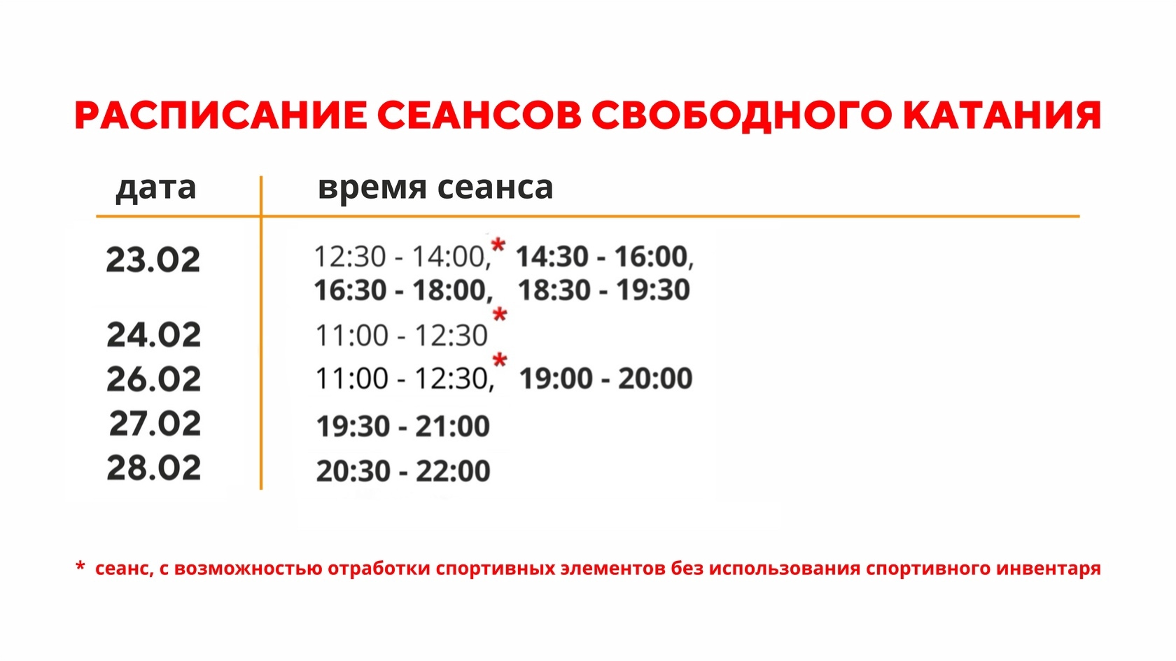 Расписание свободного катания