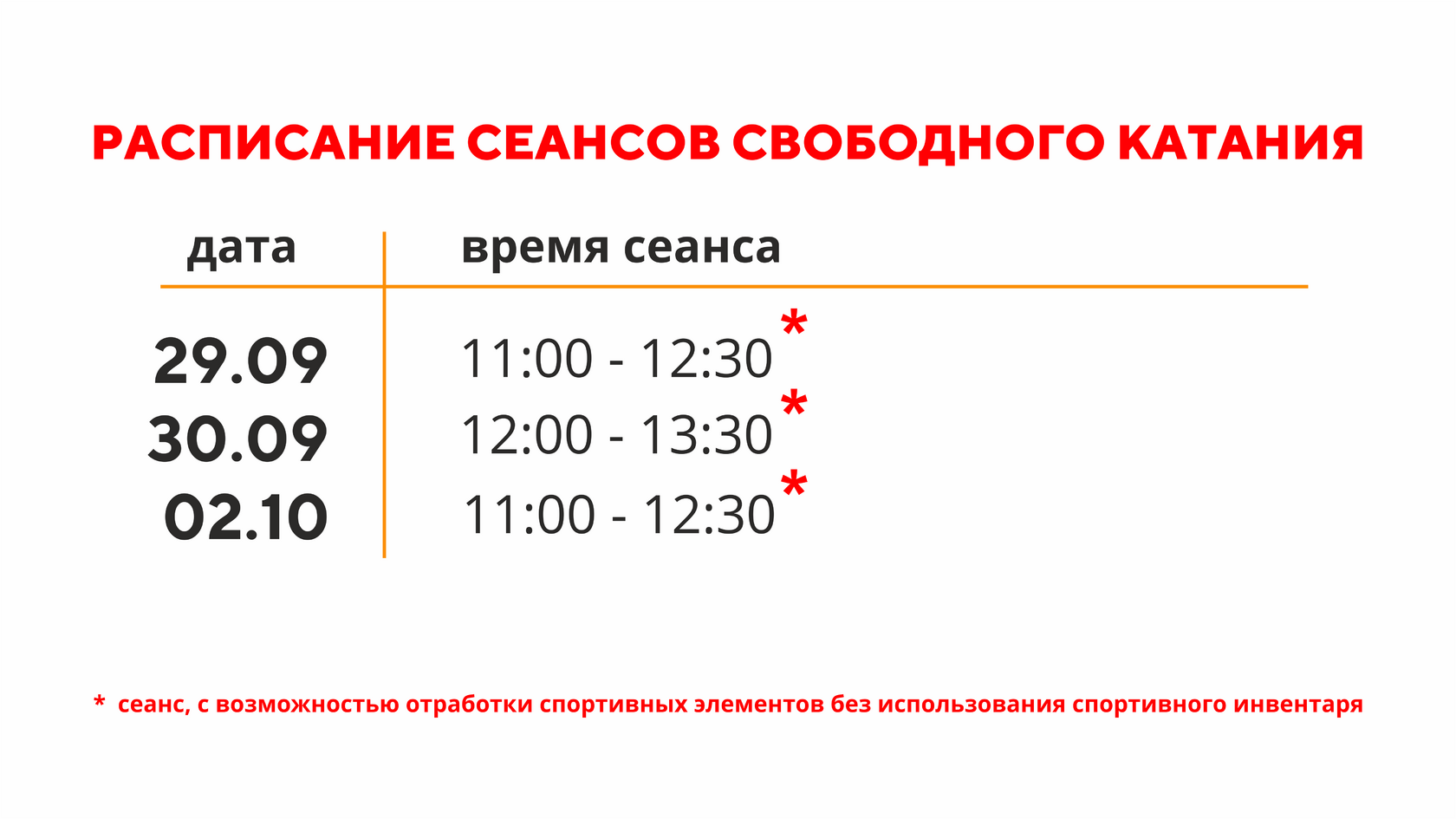 Расписание свободного катания