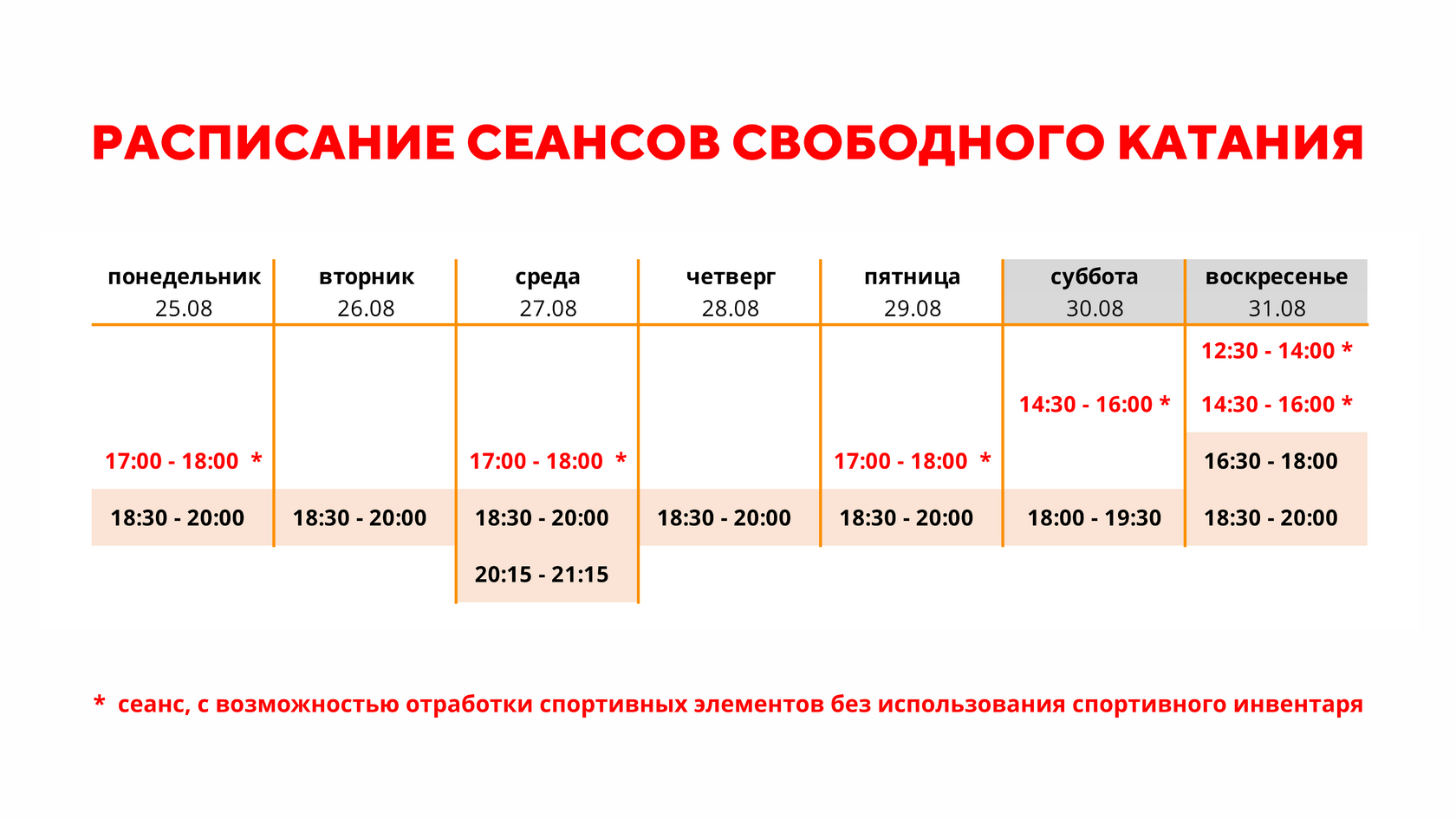 Расписание свободного катания