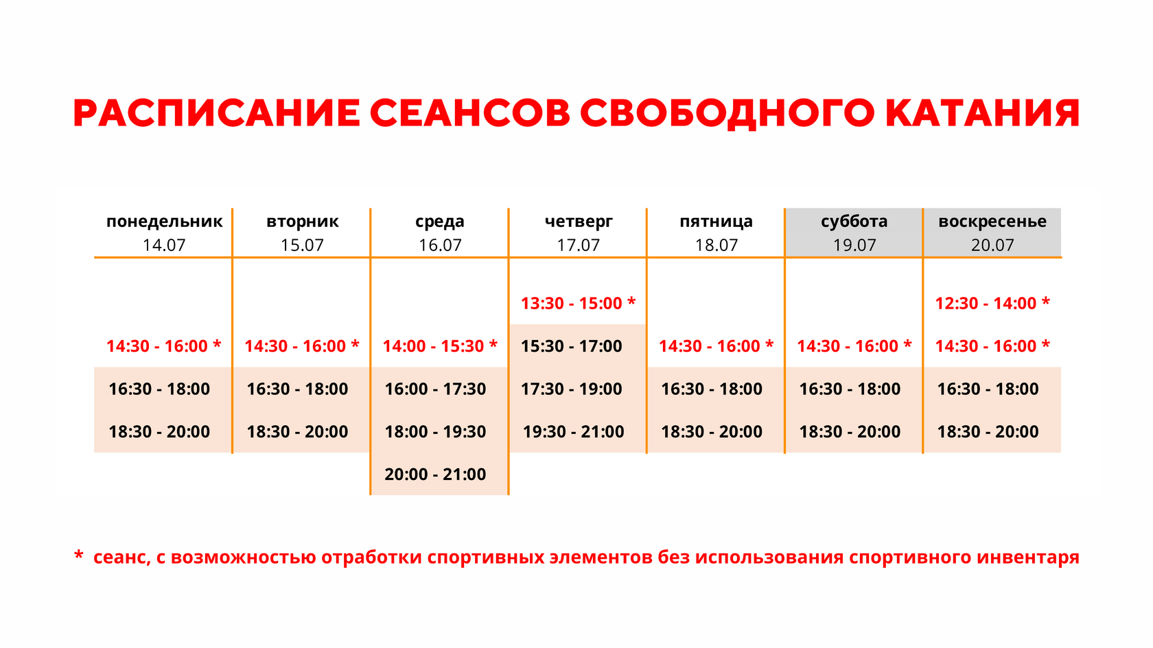 Расписание свободного катания