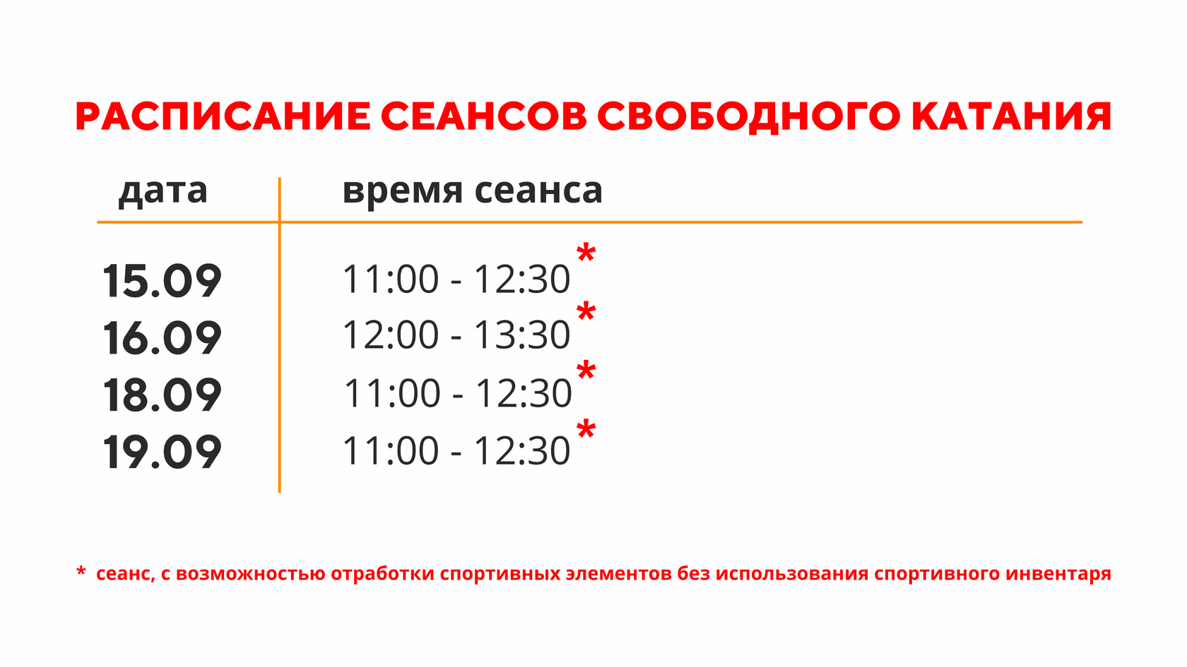 Расписание свободного катания