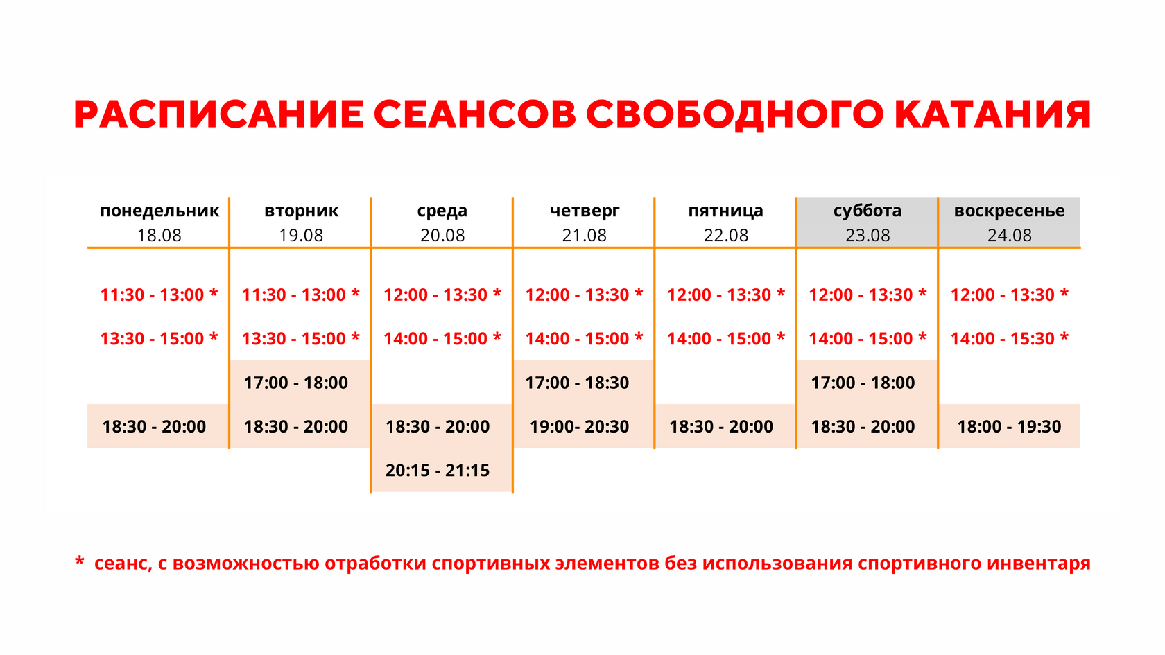 Расписание свободного катания