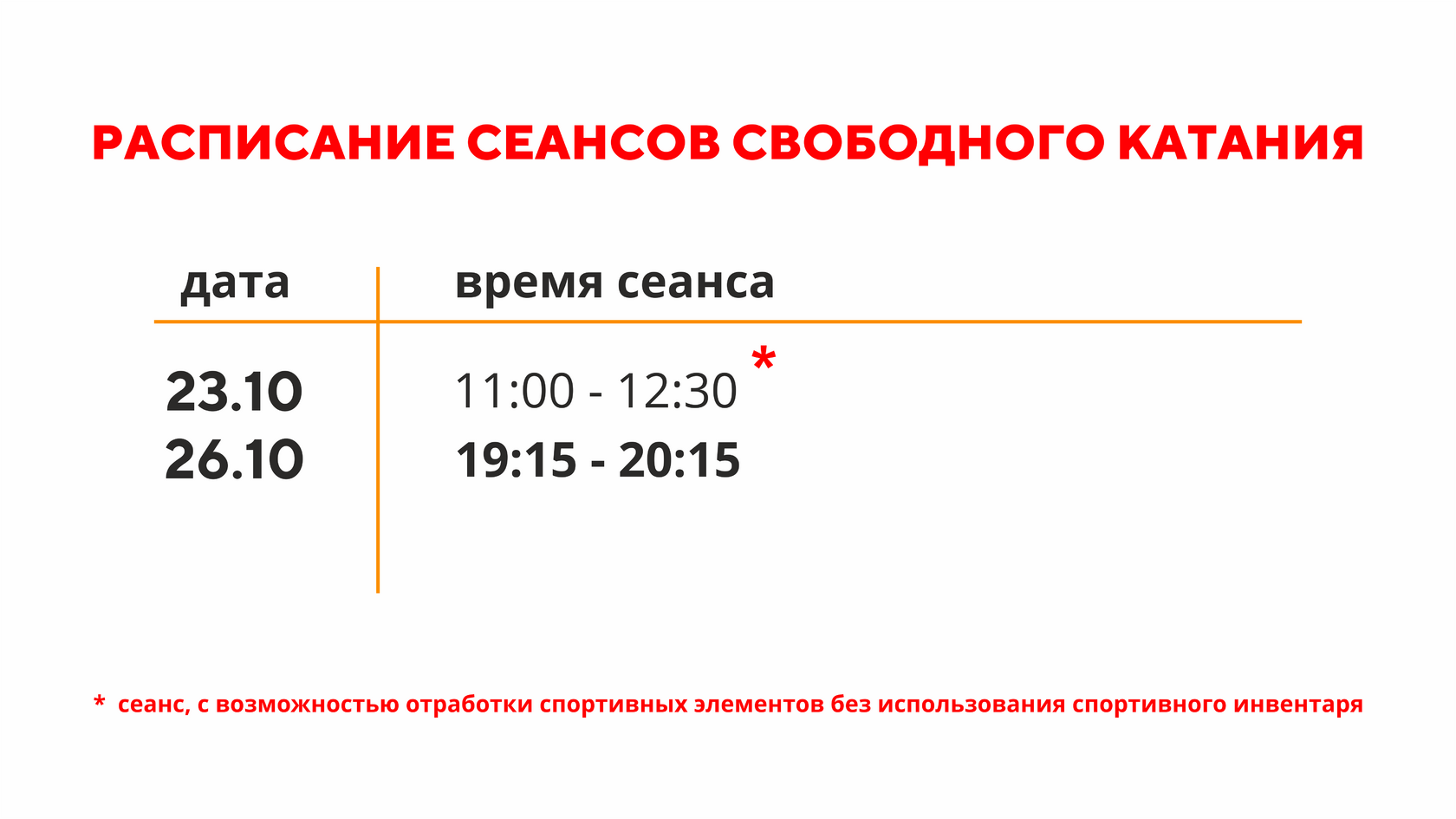 Расписание свободного катания