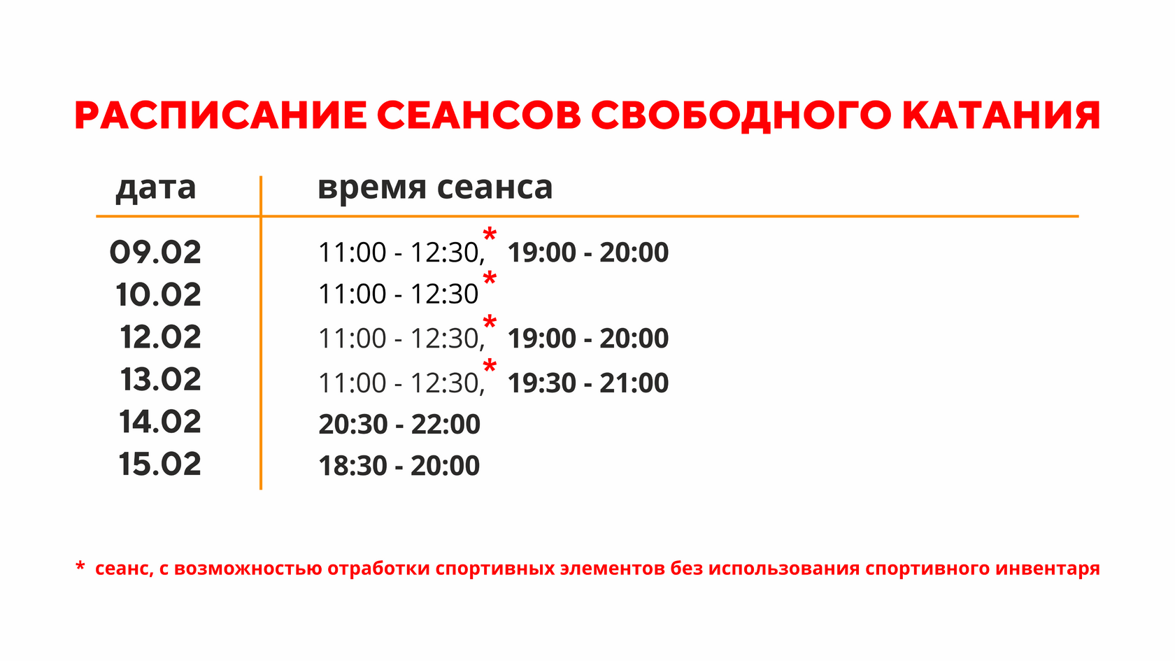 Расписание свободного катания