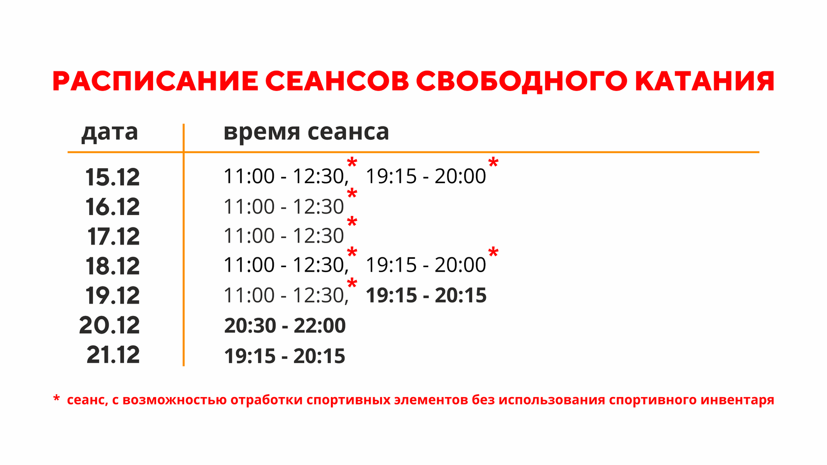 Расписание свободного катания